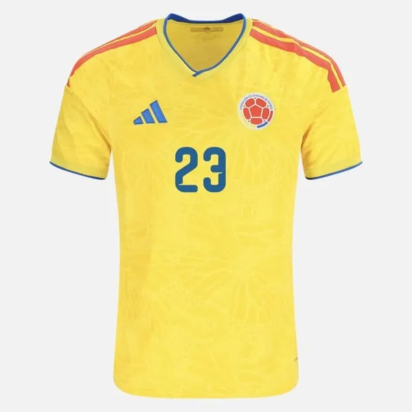 Help support Colombia with the Davinson Sánchez Colombia 26/27 Home Jersey. This jersey has match-quality fabric, features the name and number of the player, and has moisture management, all with a slim athletic fit for the ultimate in professional comfort. Represent your team with the finest details, which look great on and off the pitch.